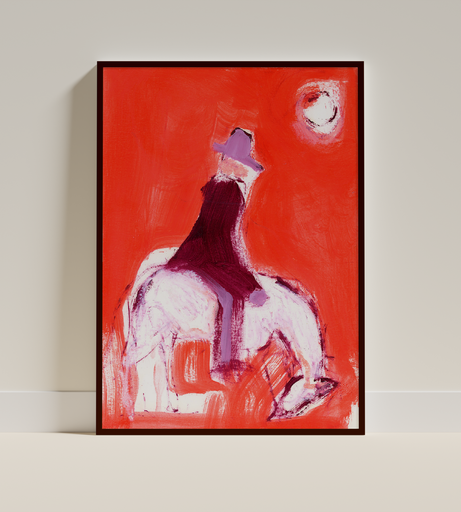 Expressive oil painting on paper. This is a contemporary depiction of a cowboy on his way home after a long day at work. Created with oil pastel and oil paint on card.