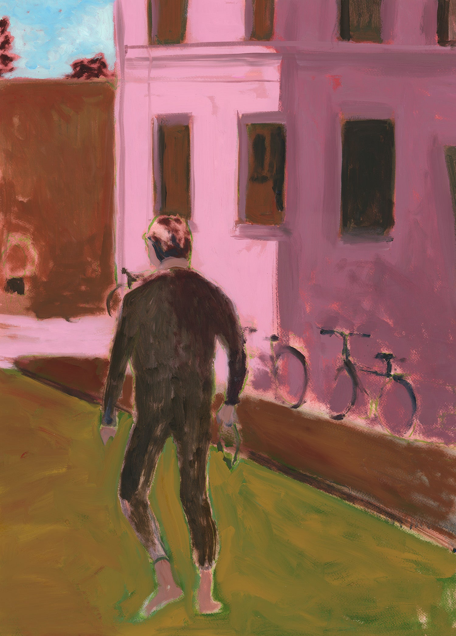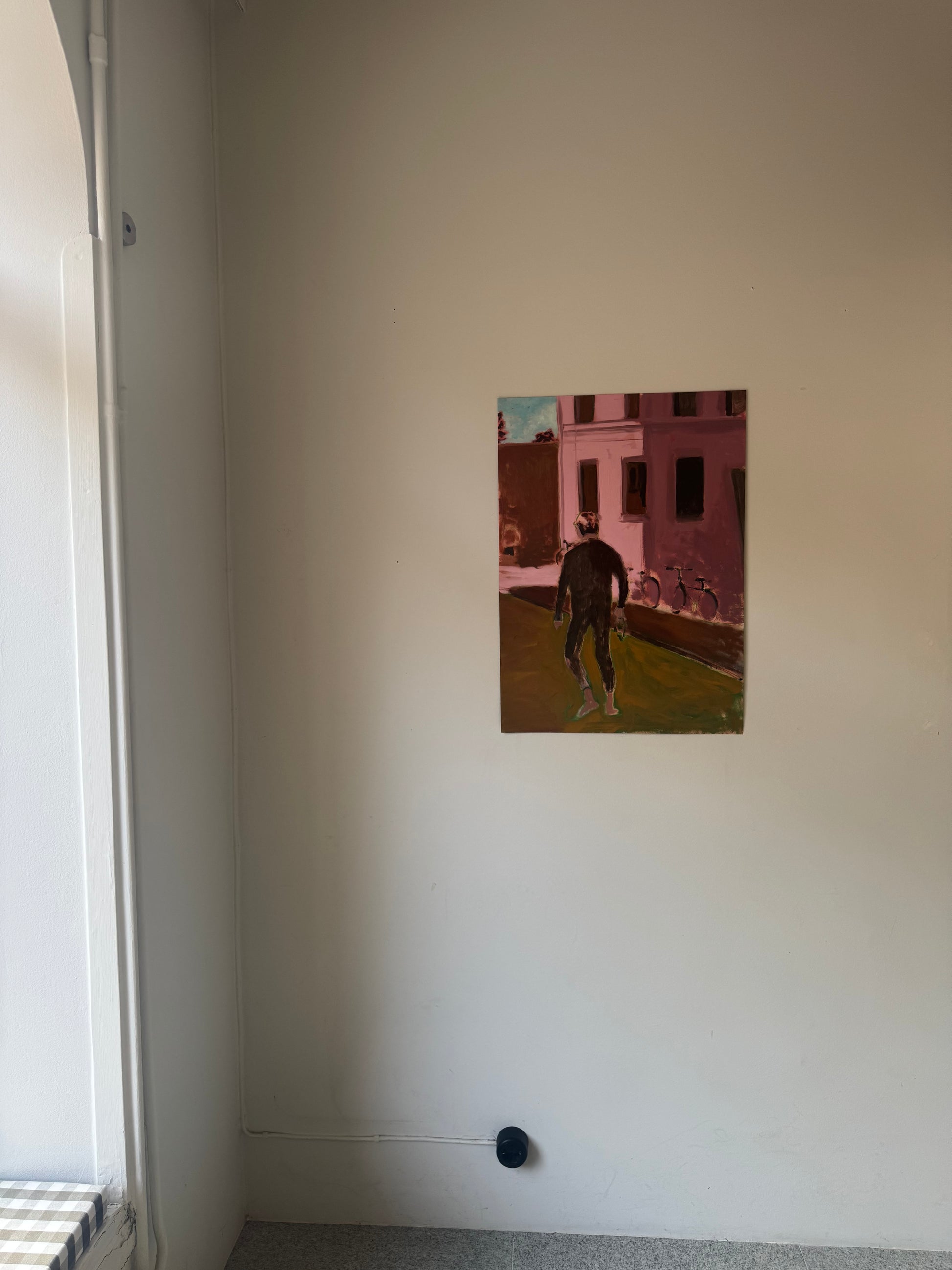 This playful piece was inspired by a series of holiday photos and everyday moments I captured during my thoughts. It comes from a trip to Kalmar to watch the Ironman, featuring a guy casually strolling down the street in his wetsuit.